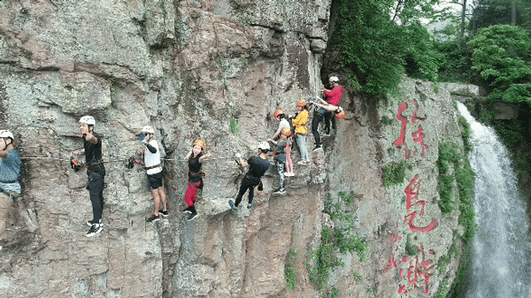 脚下瀑布冲坠,沿绝壁攀岩!肾上腺素直接拉满!